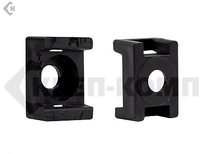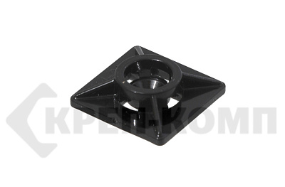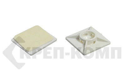 Площадки под хомут-стяжку представляют собой, квадратные площадки с двухсторонним скотчем предназначены для крепления хомутов-стяжек к гладким поверхностям внутри зданий и сооружений. Для обеспечения большей несущей способности или при использовании площадки вне зданий необходимо воспользоваться саморезом, для чего в площадке предусмотрено отверстие. Прямоугольная (усиленная) площадка может использоваться только в комплекте с саморезом и расчитана на хомуты-стяжки шириной до 8 мм.