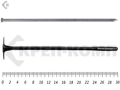 Усиленные крепежи, состоящие из шляпки, распорки и металлического стержня. Последний выполнен из углеродистой стали, покрыт слоем цинка.