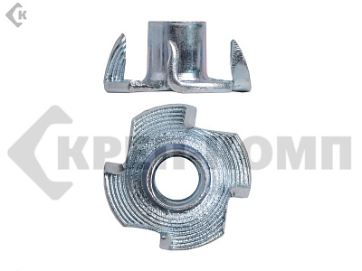 Массив и его производные (различного рода древесные волокнистые и стружечные плиты) – довольно мягкие материалы. Это свойство позволяет металлическим метизам углубляться в их структуру, обеспечивая надёжное соединение. Крыльчатая гайка (врезная) DIN 1624, создана специально для этих целей. Монтаж требует предварительного сверления отверстия соответствующего диаметра.