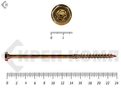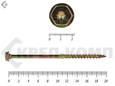 Саморезы по дереву желтые, шестигранные Torx 8х220 мм КРЕП-КОМП (50 шт)