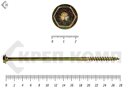 Саморезы по дереву желтые, шестигранные Torx 8х260 мм КРЕП-КОМП (50 шт)