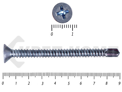 Оцинкованные потайные саморезы со сверлом DIN 7504 P – имеют полную резьбу и сверло на кончике. Потайная головка при вкручивании входит в материал и не выступает на поверхности. Такими саморезами можно закрепить листовые отделочные материалы из пластика, металла, фанеры к металлическим конструкциям. Саморез может высверливать отверстие в углеродистой стали толщиной до 4мм.