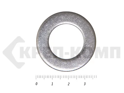 Плоская шайба DIN 125, выполнена из нержавеющей стали и может использоваться во влажной среде. Служит она для фиксации резьбовых соединений. Представляет собой плоский диск с гладким цилиндрическим отверстием в центре для установки винта, болта или другого метрического элемента. За счет своей формы увеличивает площадь прижатия головки винта или гайки к поверхности заготовки. Используется при необходимости исключить произвольное раскручивание винта, к примеру, под воздействием вибрационных нагрузок